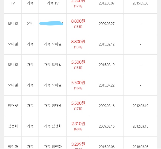 또한 표에 적혀있는... 인터넷, 집전화, 티비에 적용된 할인은~~??