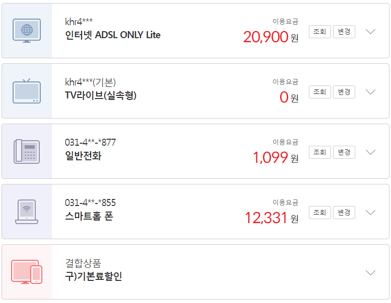 : 인터넷 25,300원 + TV 13,200원 = 총 38,500원 부과