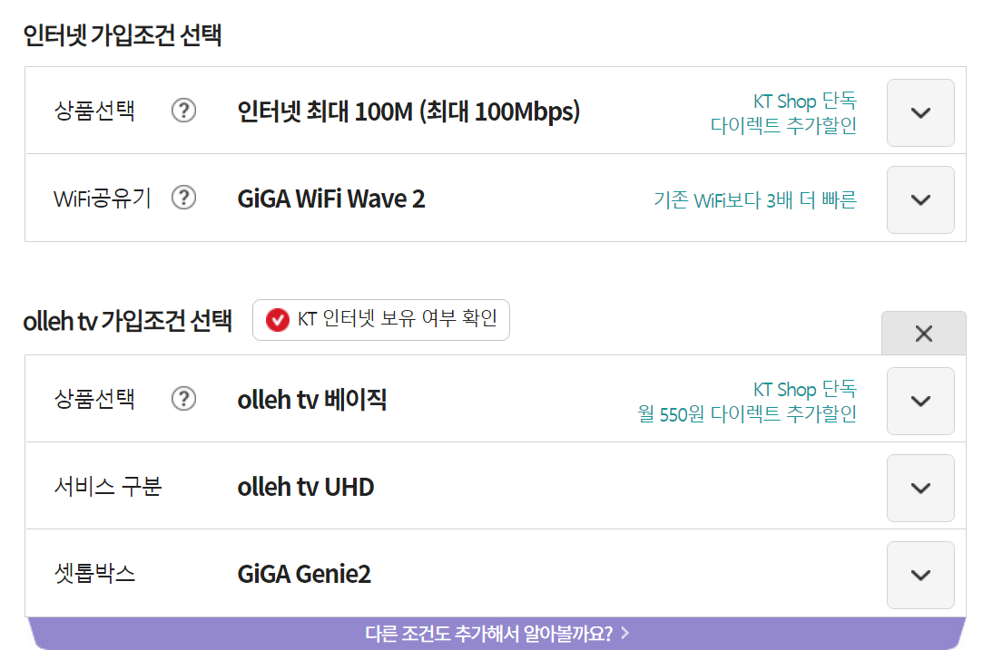 현재 KT 핸드폰을 사용 중이라 같이 결합하면 좋을 거 같아서 KT로 가입하려고요.