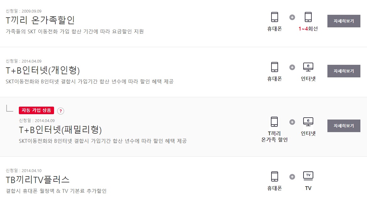 부모님과 저 3인이 SK 온가족 할인(30년 이상)으로 결합한 상태입니다.