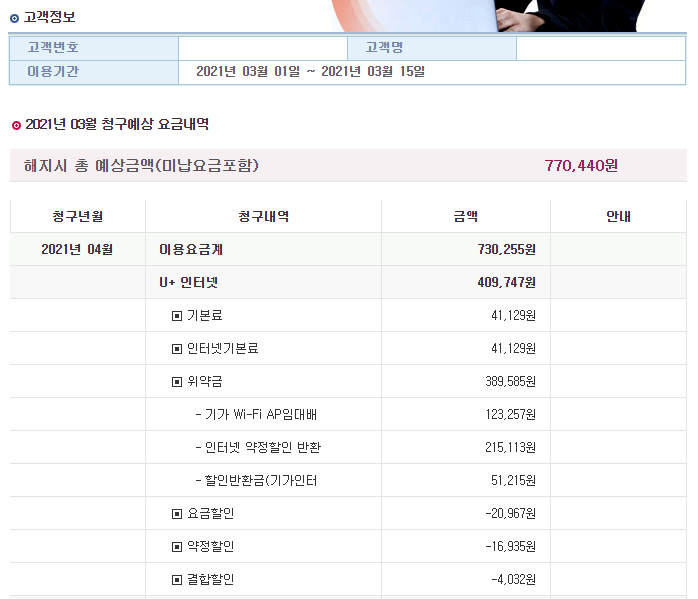 여튼 말씀드린 항목들을 제외해보면 위약금 770,440원에서