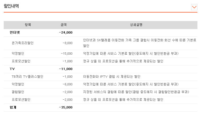 2. SKT (3회선) 결합상품으로 할인 받고 있음