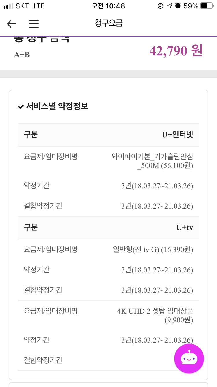 현재 내고 있는 요금은 42790원입니다.