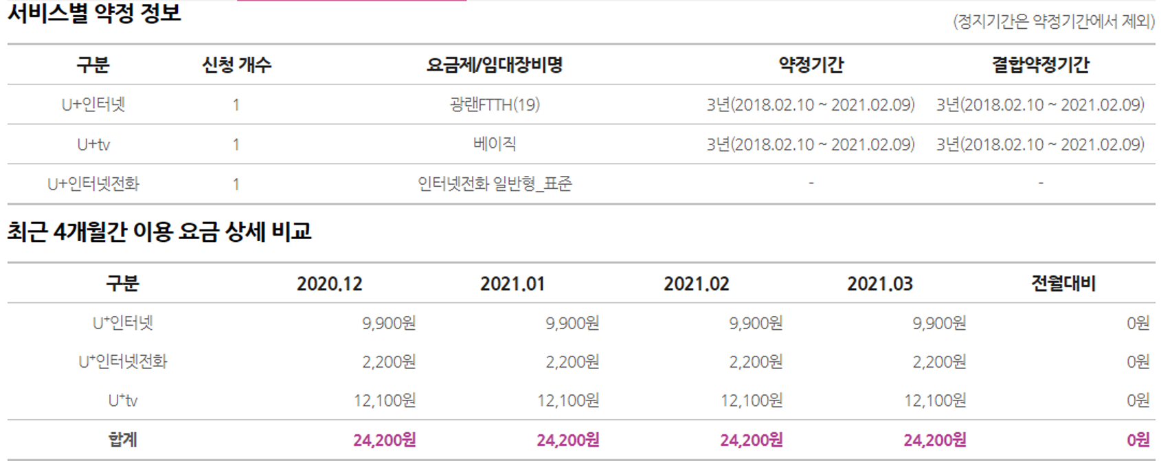 현재 LG U+인터넷이랑 티비가 약정 만료 상태이며,