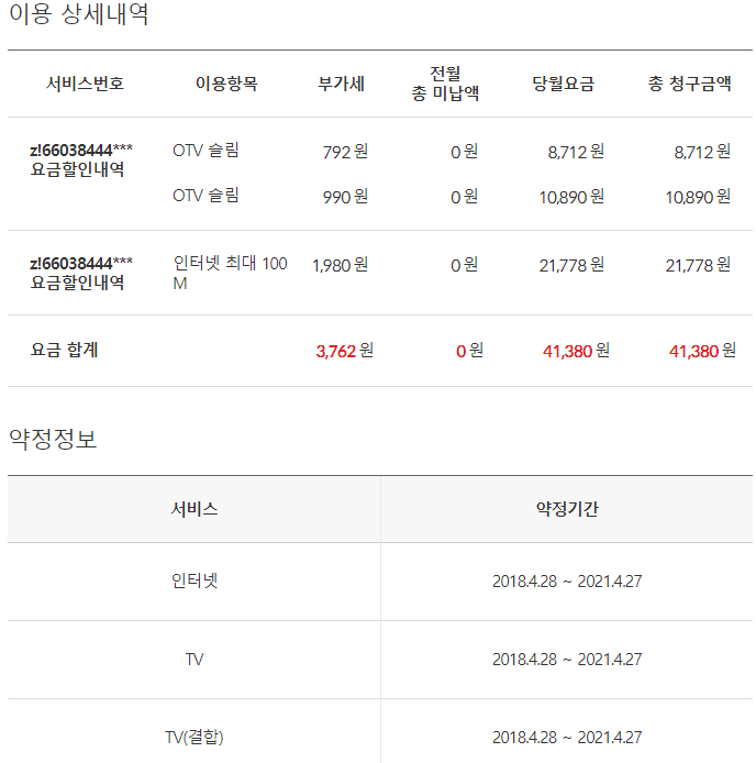 이는 부가세, 셋탑박스, 기가와이파이 공유기 임대료까지 싹 포함된 금액입니다.
