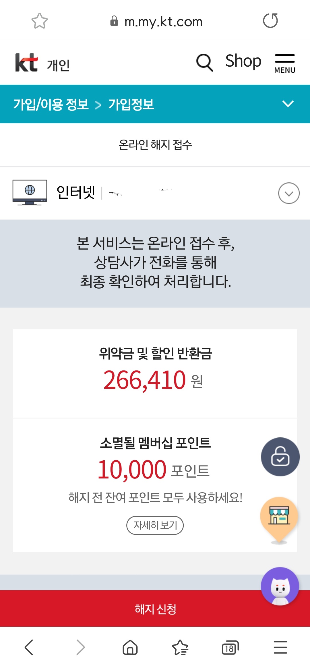 즉, 실제 위약금은 본사 고객센터와 통화해보면 아시겠지만 0원으로 안내받으실 거에요.