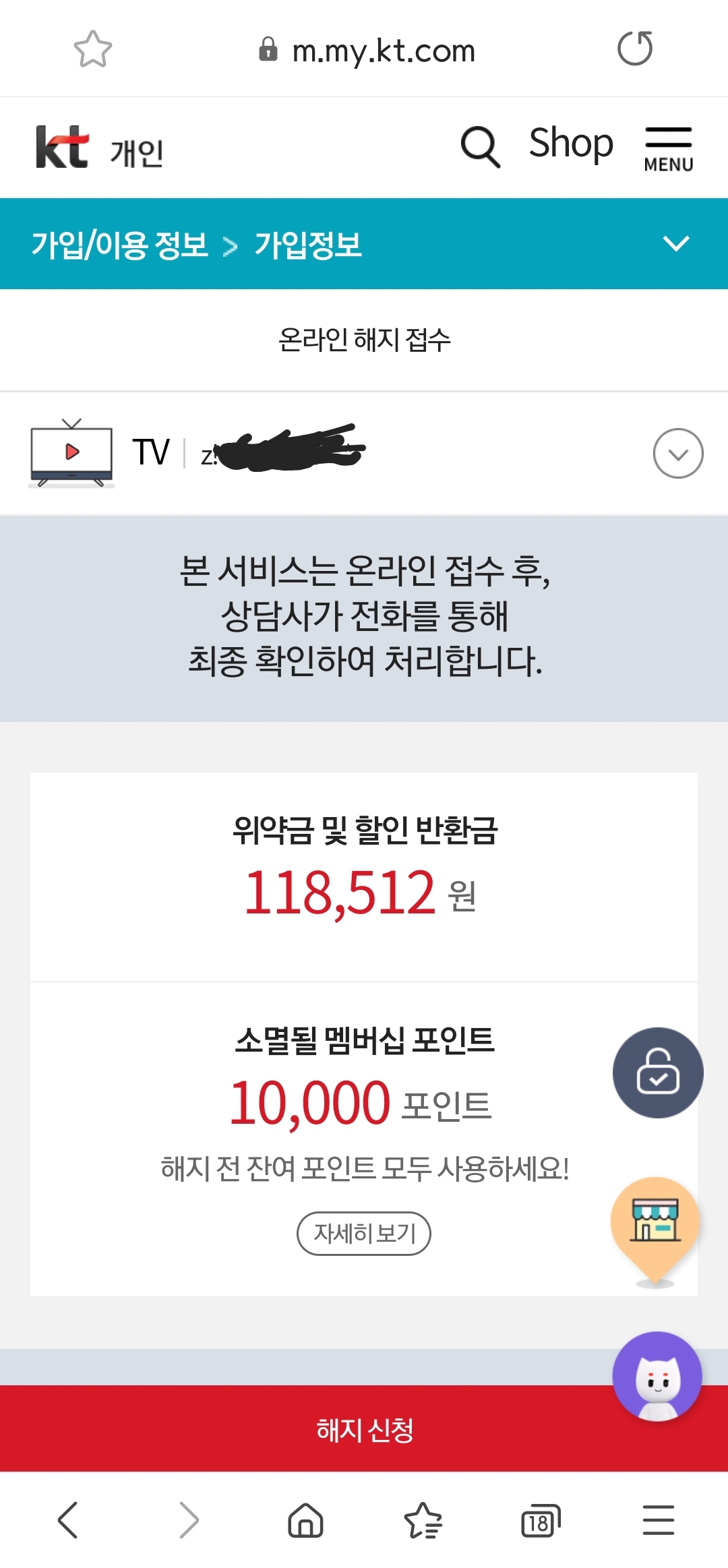 실제 해지페이지 유의사항에도