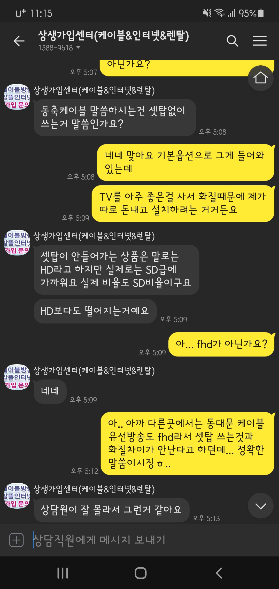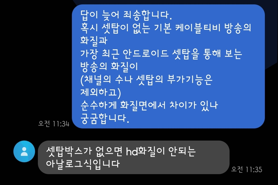 @이상희티브로드 상담원은 유선방송은 sd급이라고 화질이 엄청 떨어지고 uhd셋탑을 썼을때 화질이 훨씬 좋아진다고 말하는데...