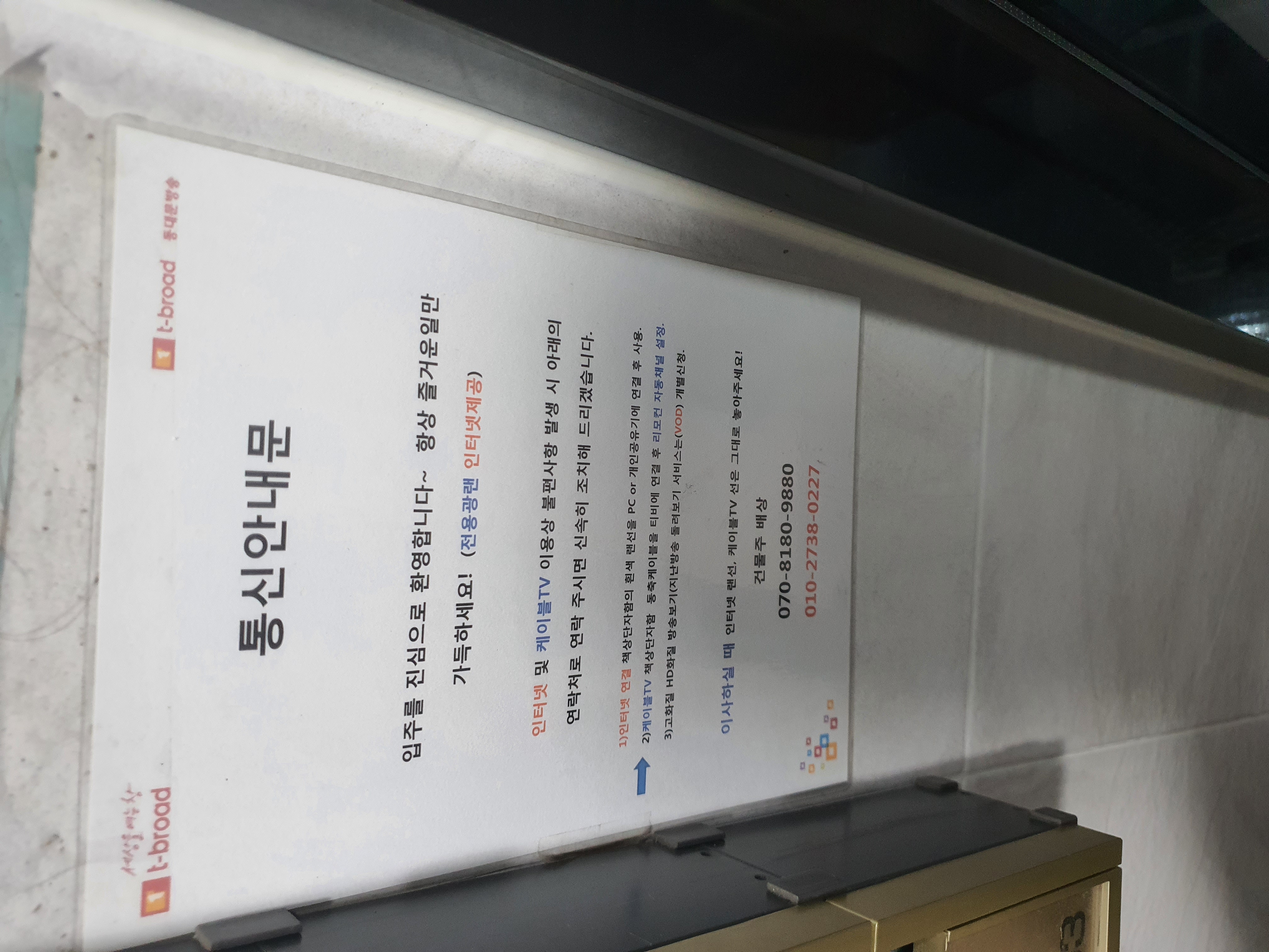 원룸건물에 사는데... 건물 자체에 동대물 케이블(티브로드)가 들어와있어서