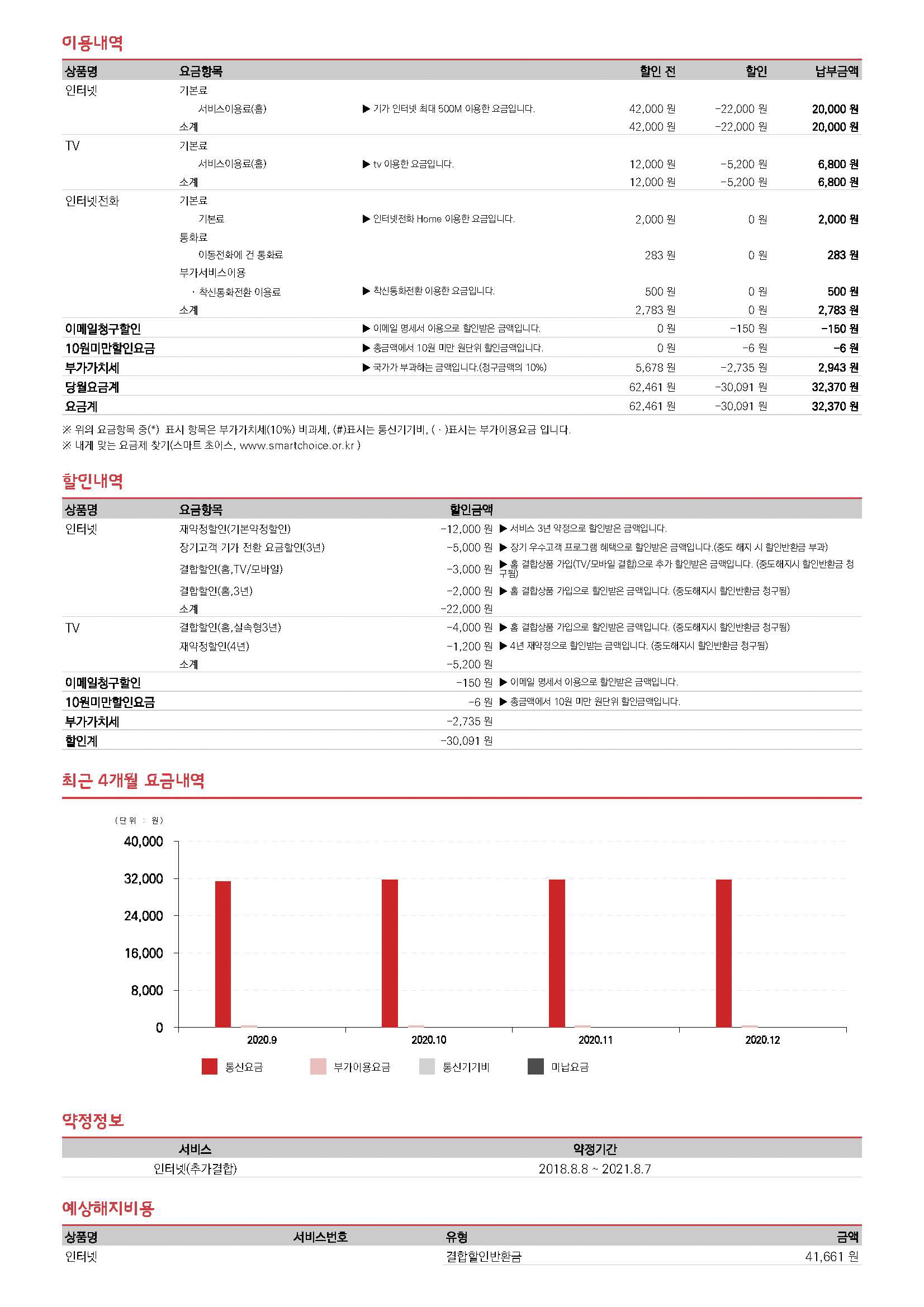 * 사이트에서 조회한 내용과 청구서상 '약정기간' 내용이 달라 각 내용을 첨부합니다.
