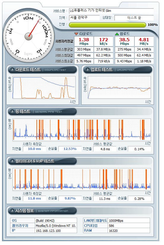 엘지 유플러스 사용중인데 인터넷 속도