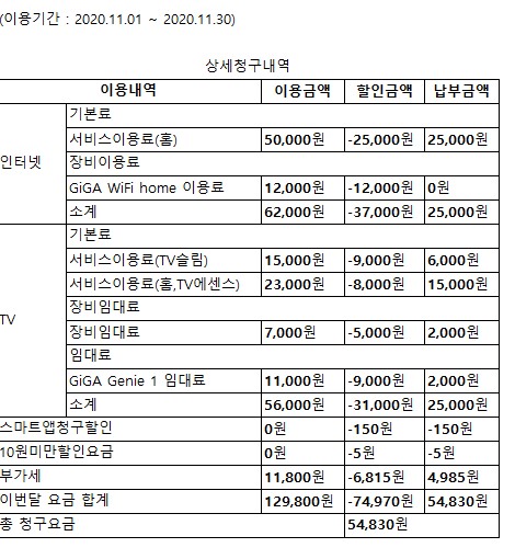 3년 약정 조건이며, 부가세 등등이 모~두 포함된! '실제 납부 요금'에 해당합니다!^~^*
