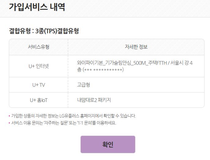 현재 사용하시는 LG 인터넷 약정이