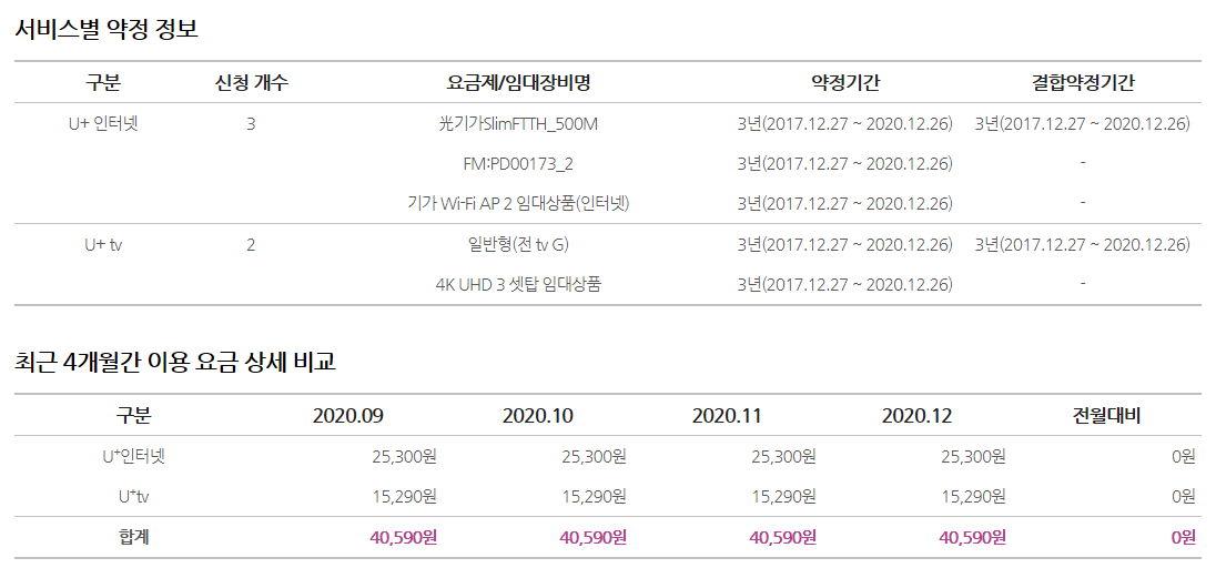 5) 최종 인터넷+TV 월요금은 => 40,590원이 된 것이지요ㅎㅎ