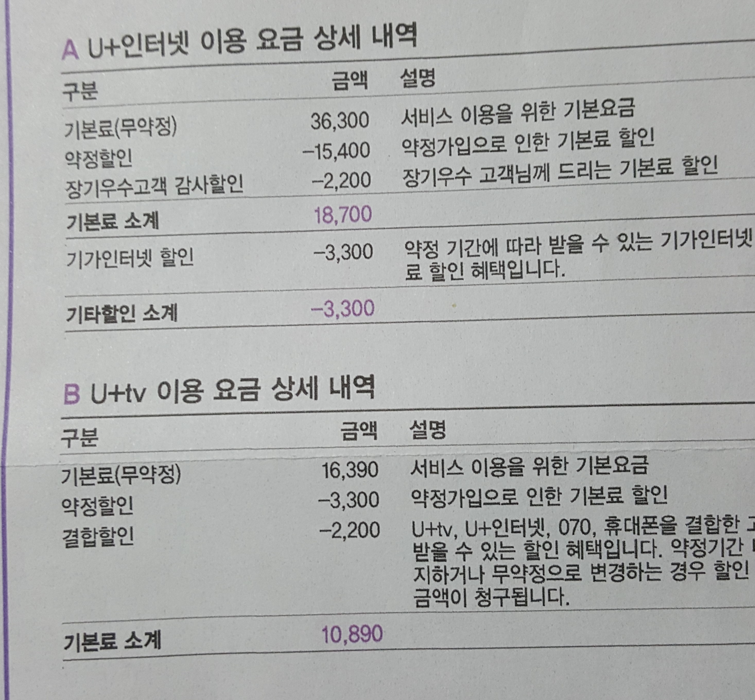 핸드폰 할인액을 포함하면 실제 주머니에서 나가는 돈은 27,390원인 셈이에요.