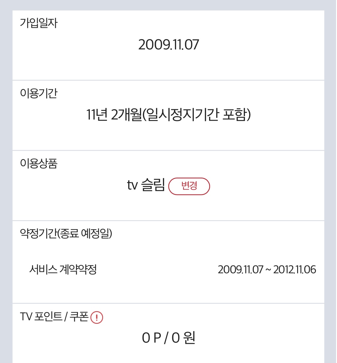 tv가입정보입니다