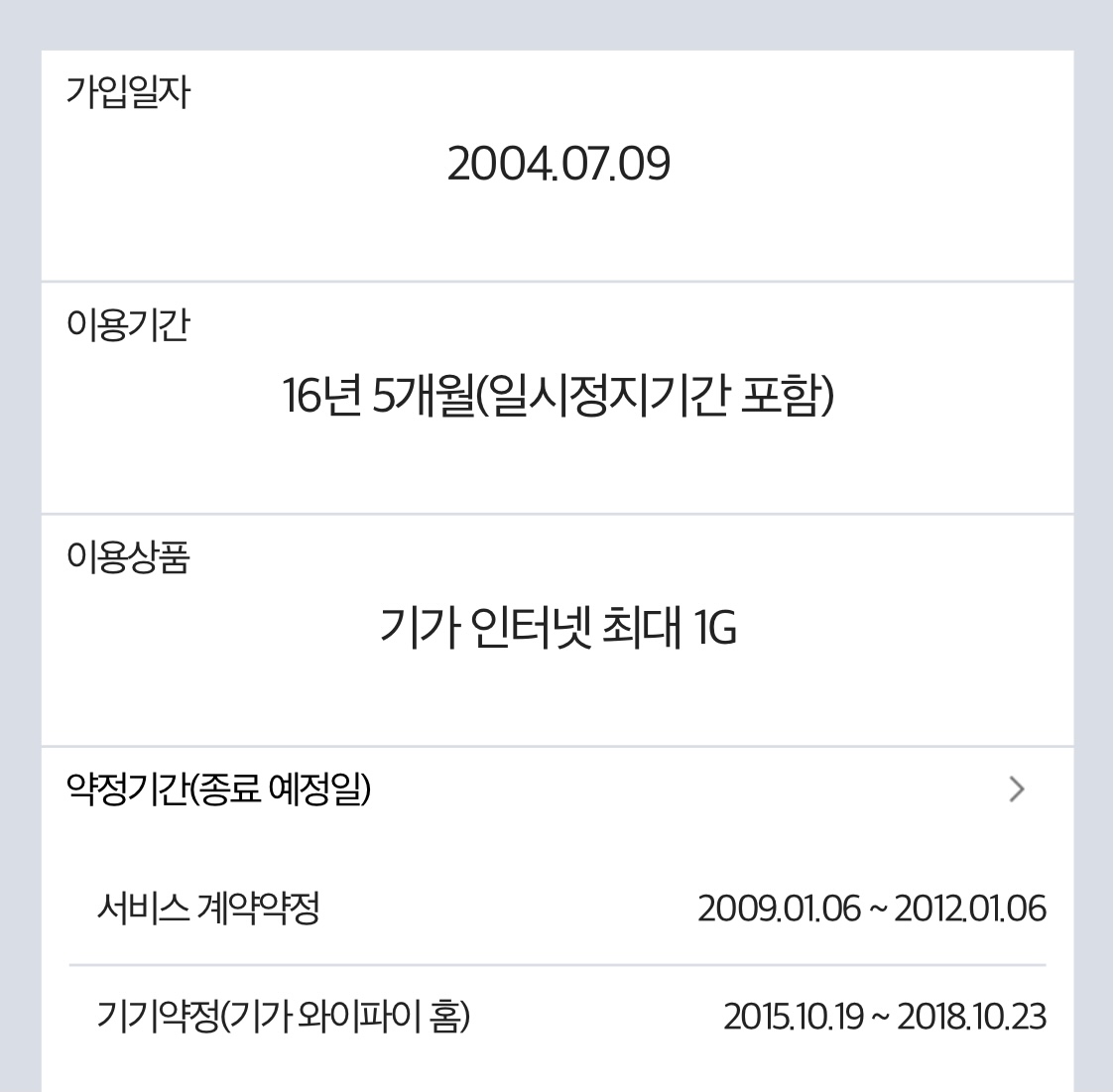 자세한 내역 확인은 불가하지만..ㅠ 오랫동안 KT를 유지하고 계시니