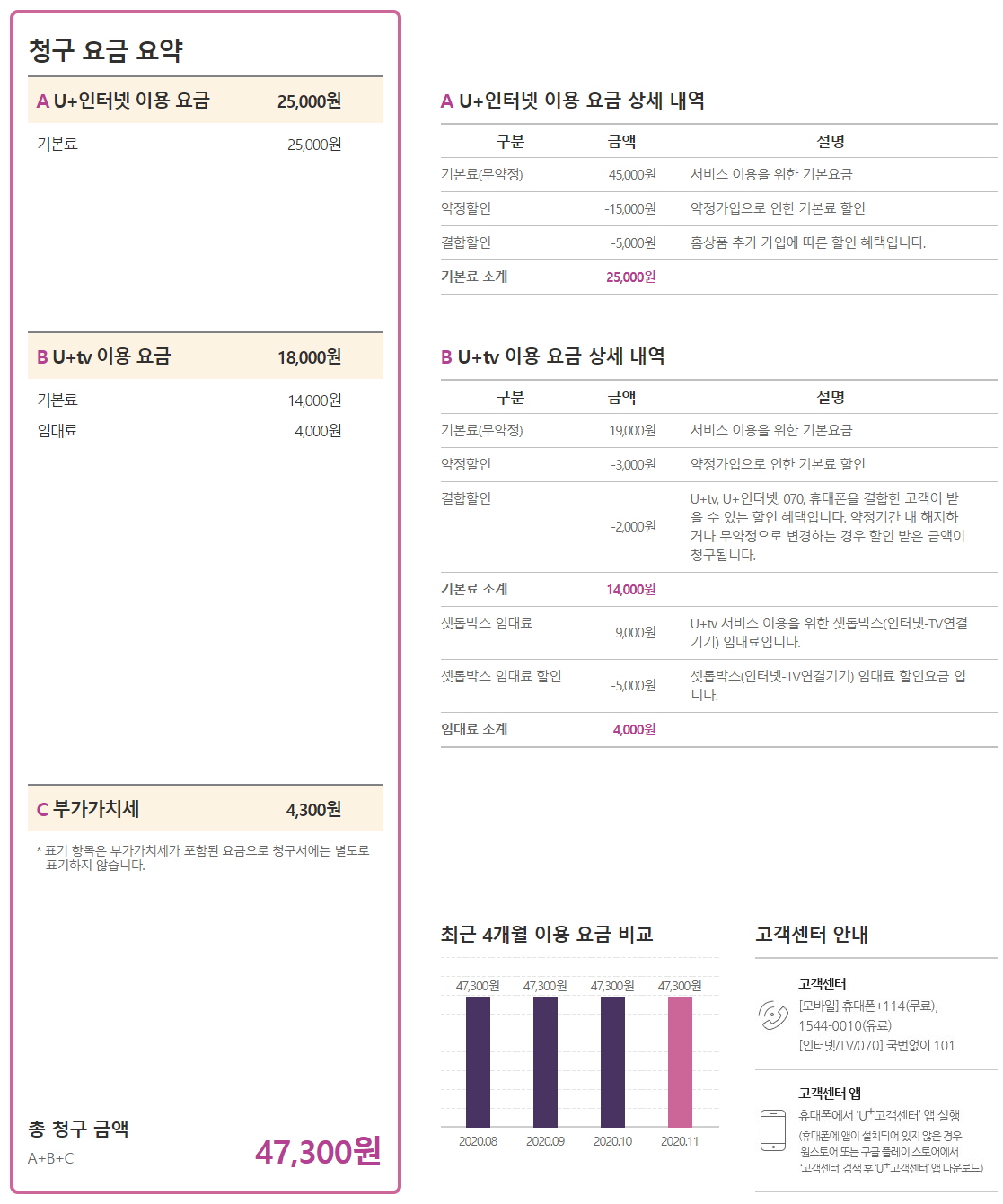 = 총요금 47,300원을 납부중이시므로~~!!ㄷㄷㄷ