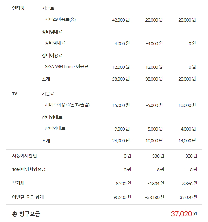 확실하게 예측하긴 힘들지만 보통 KT의 경우 인터넷과 TV를 사용하신다면