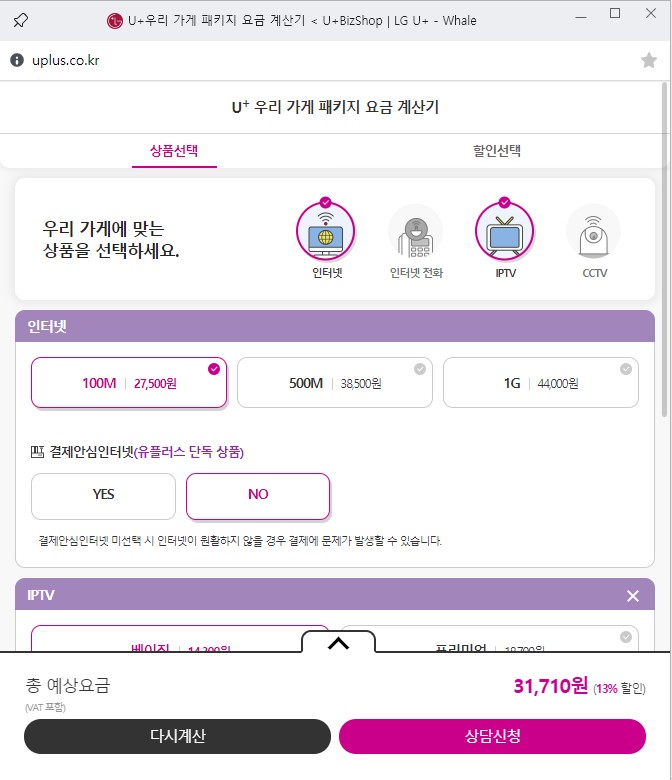 LG로 갈아타면 인터넷, tv요금이 인상되긴 하지만