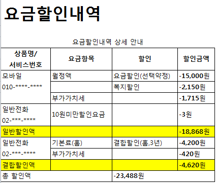 모바일/일반전화 할인상세내역