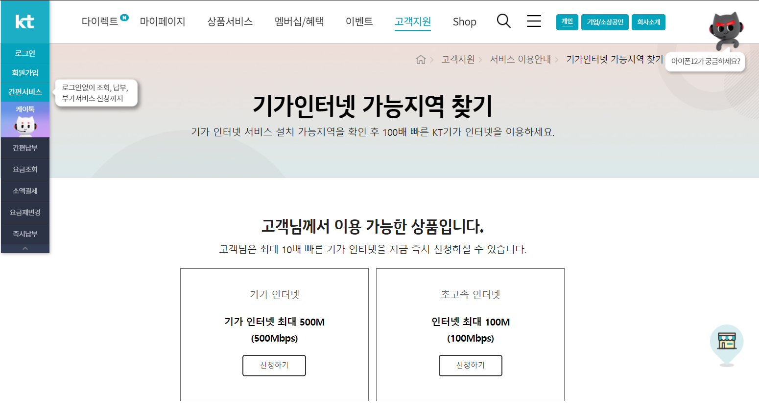 KT 500메가 인터넷+TV 문의드립니다