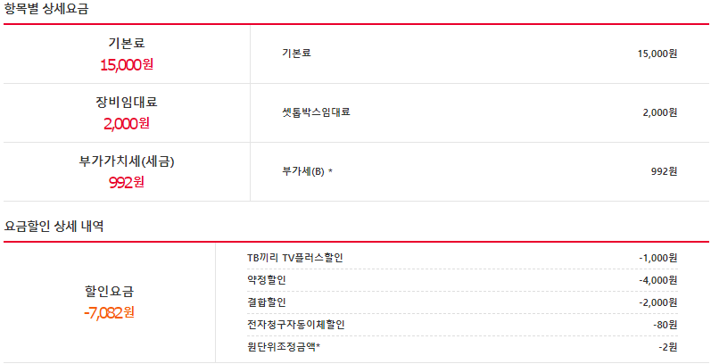 휴대폰 할인까지 생각해보면 실질적인 체감요금은 31,550원인 셈입니다