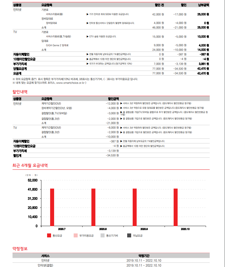 *KT상품들의 월 납부요금 (= 42,900원 그대로 납부중이신가유~?!)