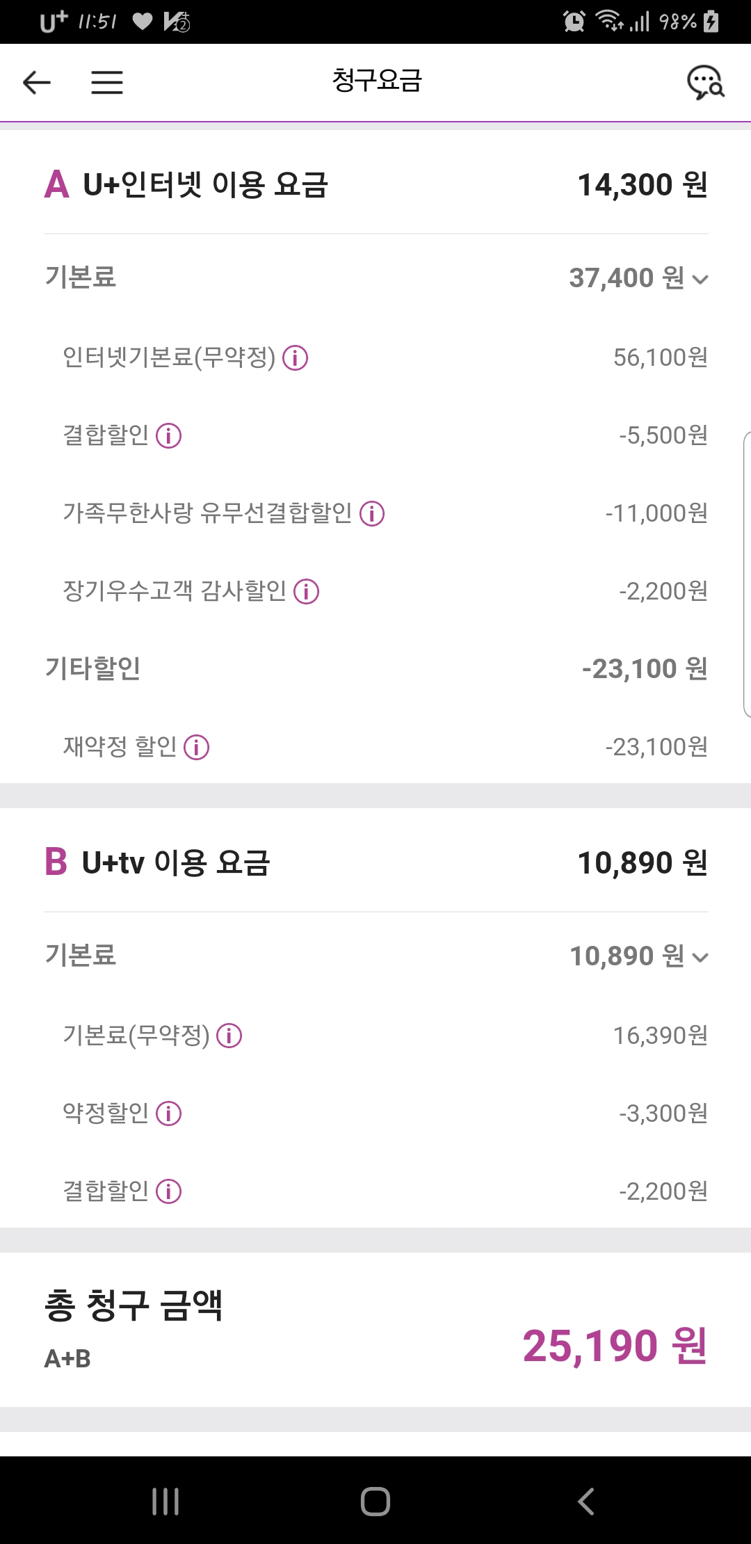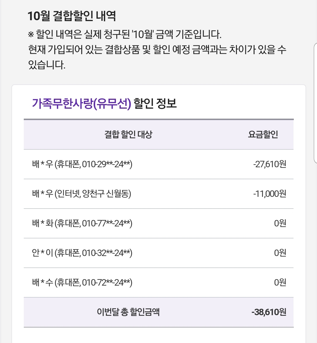 결합할인내역입니다.