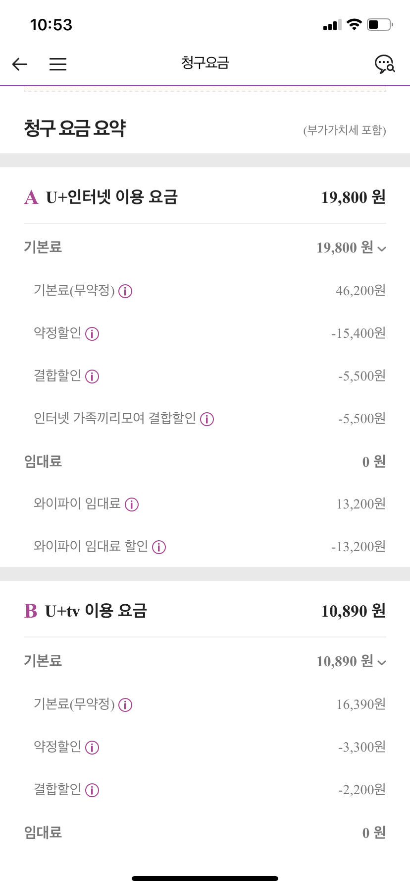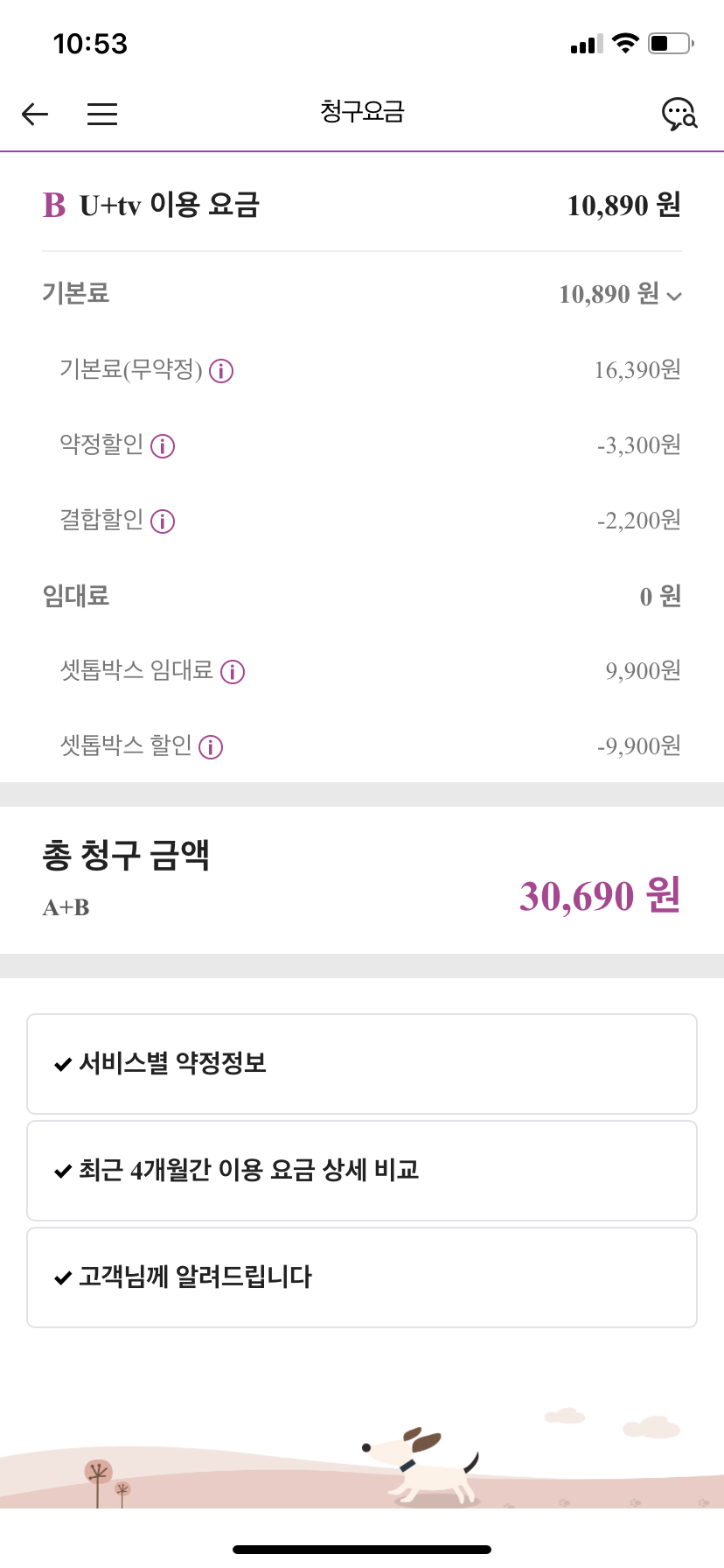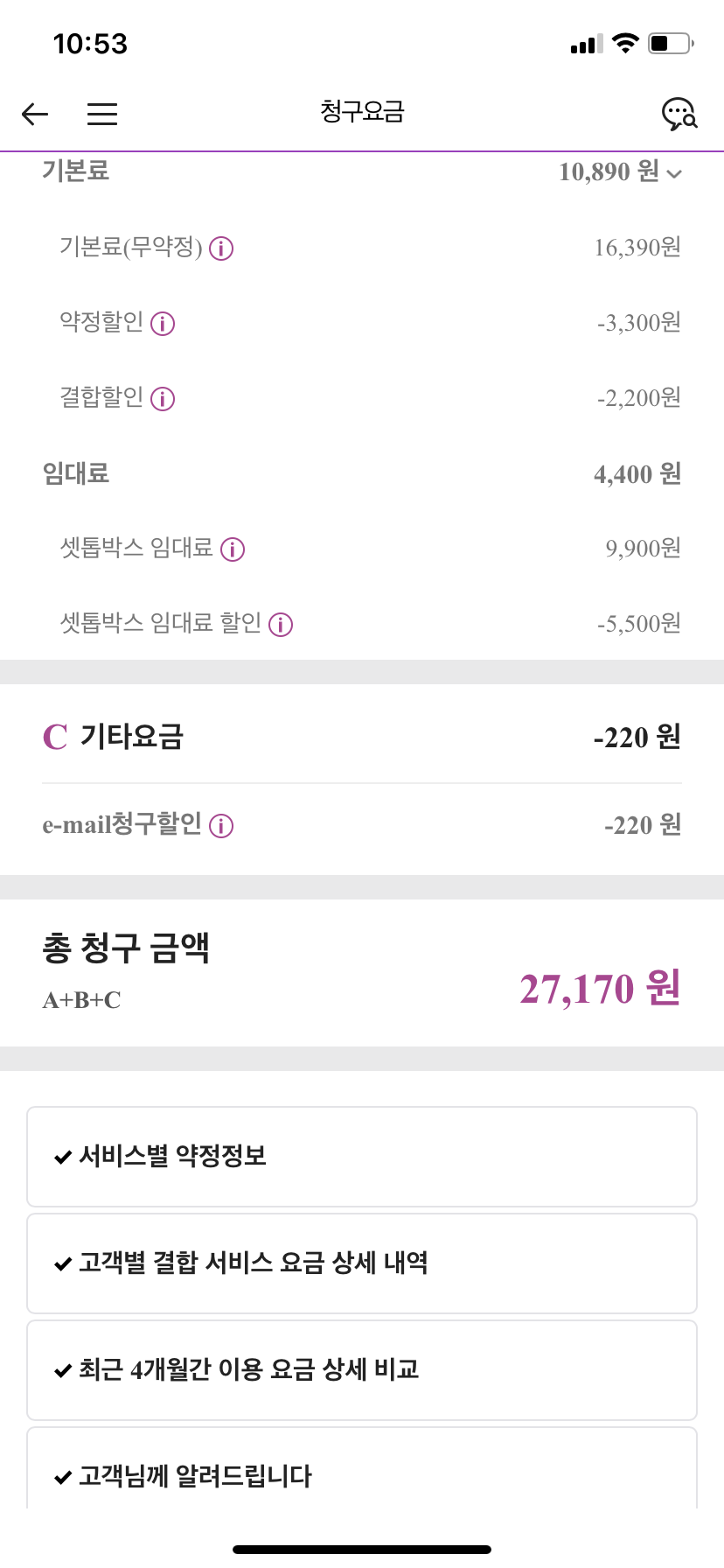 저도 제가 저렴하게 이용 중인건 대충 알고 있었는데 막연하게 재약정 상품권 금액이 낮아서 긴가민가 했네요.
