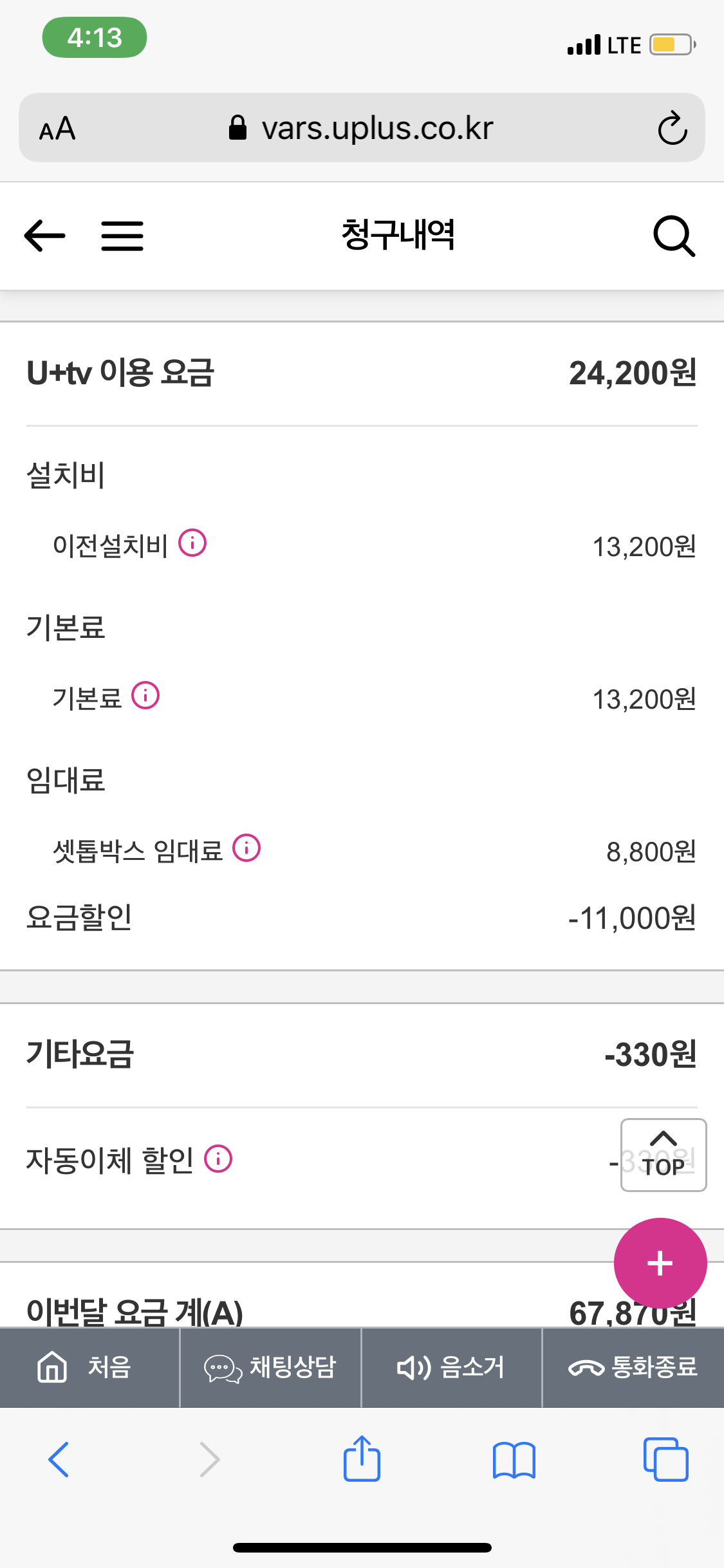 2) 현재 이용중이신 LG상품들 (100메가급 + 기본 티비) 총요금이 무척 저렴하네요~!+_+b