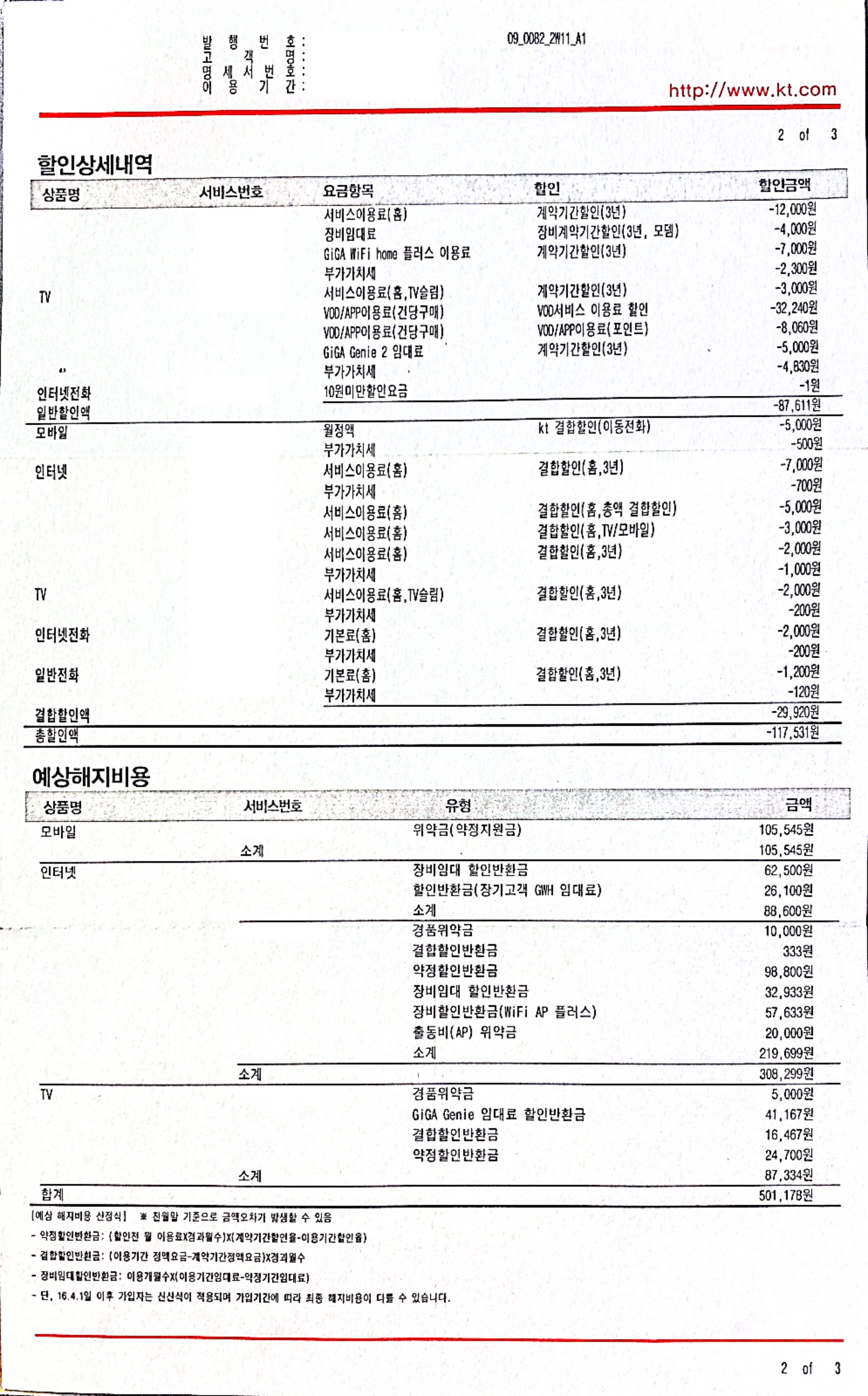 KT인터넷 해지시 발생하는 위약금이 50만원이고,