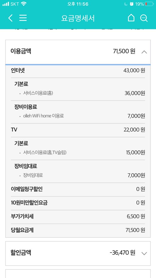 인터넷 + IPTV 포함하여 35,000원 정도라면 평범한 요금이네요!