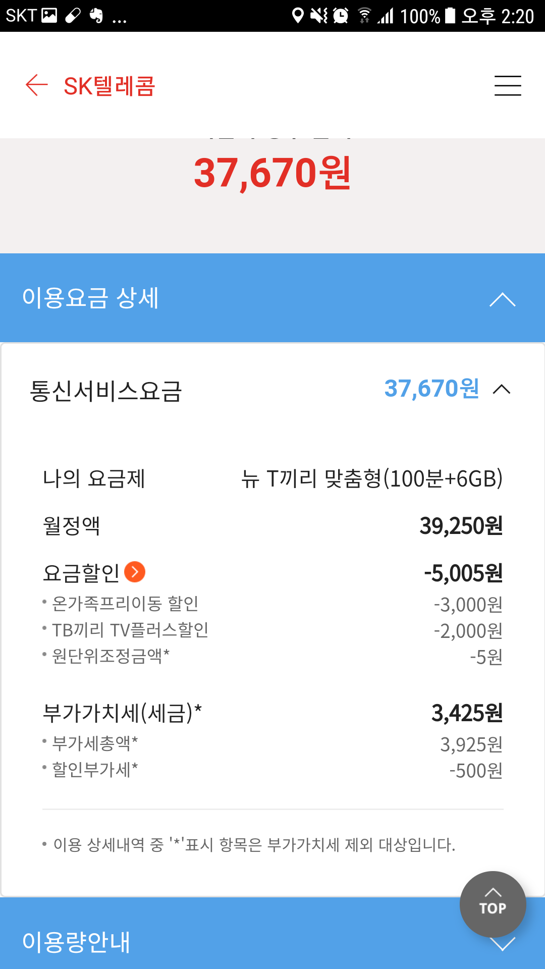 SK핸드폰을 결합해 "온가족프리"를 적용해 두셨네요.