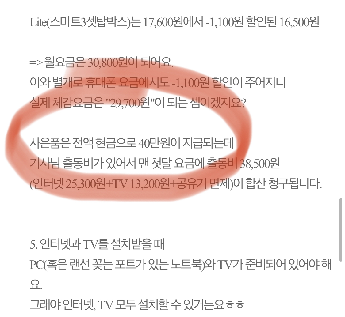 5. 인터넷과 TV를 설치받을 때