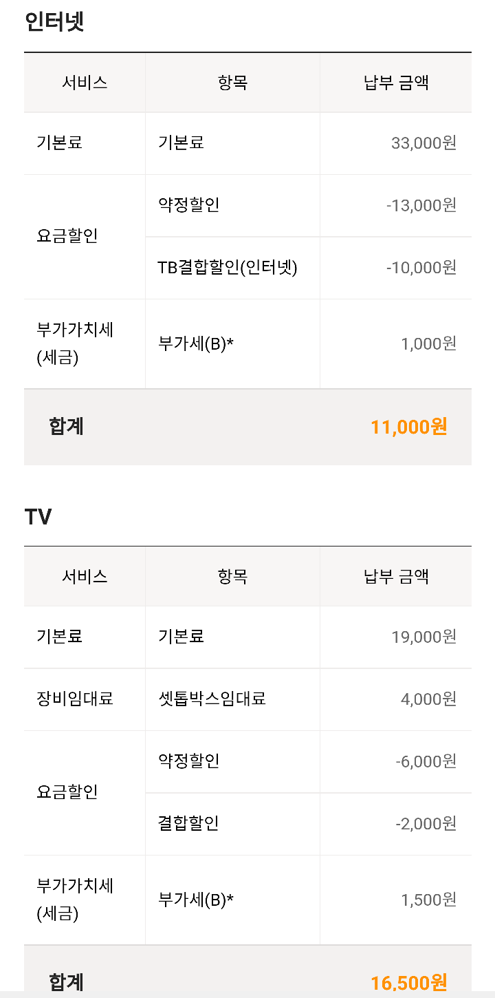 * 설치비 : 27,500원이 첫달 요금과 함께 자동으로 한번 빠져나갑니다;;;