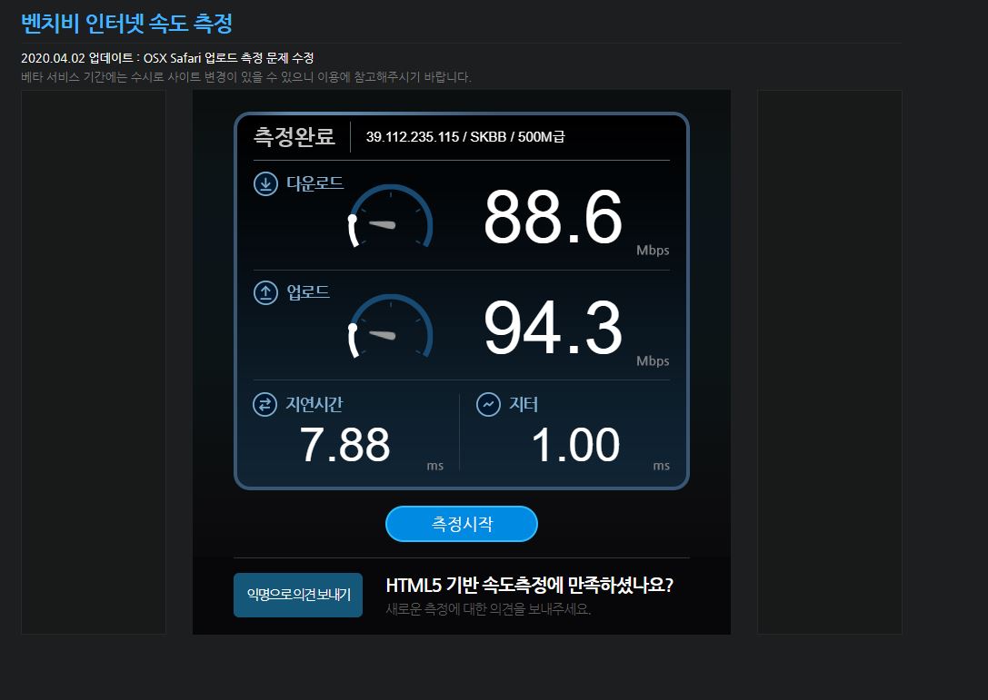 참고로 측정하실 땐 인터넷을 쓰는 단말기가 전혀 없어야 합니다.