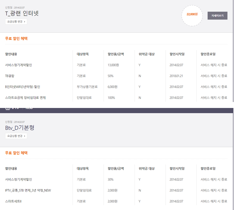 현재 T 온가족 할인 30년 할인 받고 있으며 TB 결합으로 위와 같은 할인이 진행되고 있는 것 같습니다.