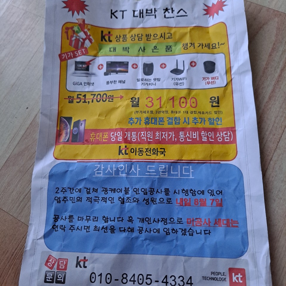 최근에 아파트에서 KT특등급 랜을 들였습니다 . 그래서  인터넷을 쓸꺼면 돈내고 쓰면 된다라는 답변을 받았는데 사진과 같은 제안도 받았는데 어떻게 하면 될까요? 은근 이런거 사기많길래..