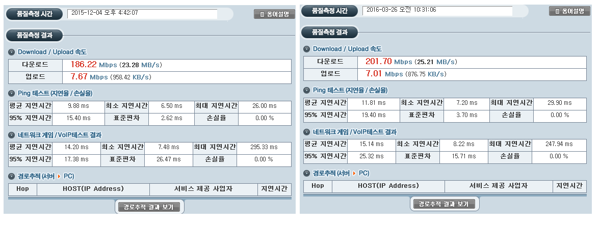 업로드와 지연시간(ping)에 대해서는 전~~혀 언급이 없습니다^^;
