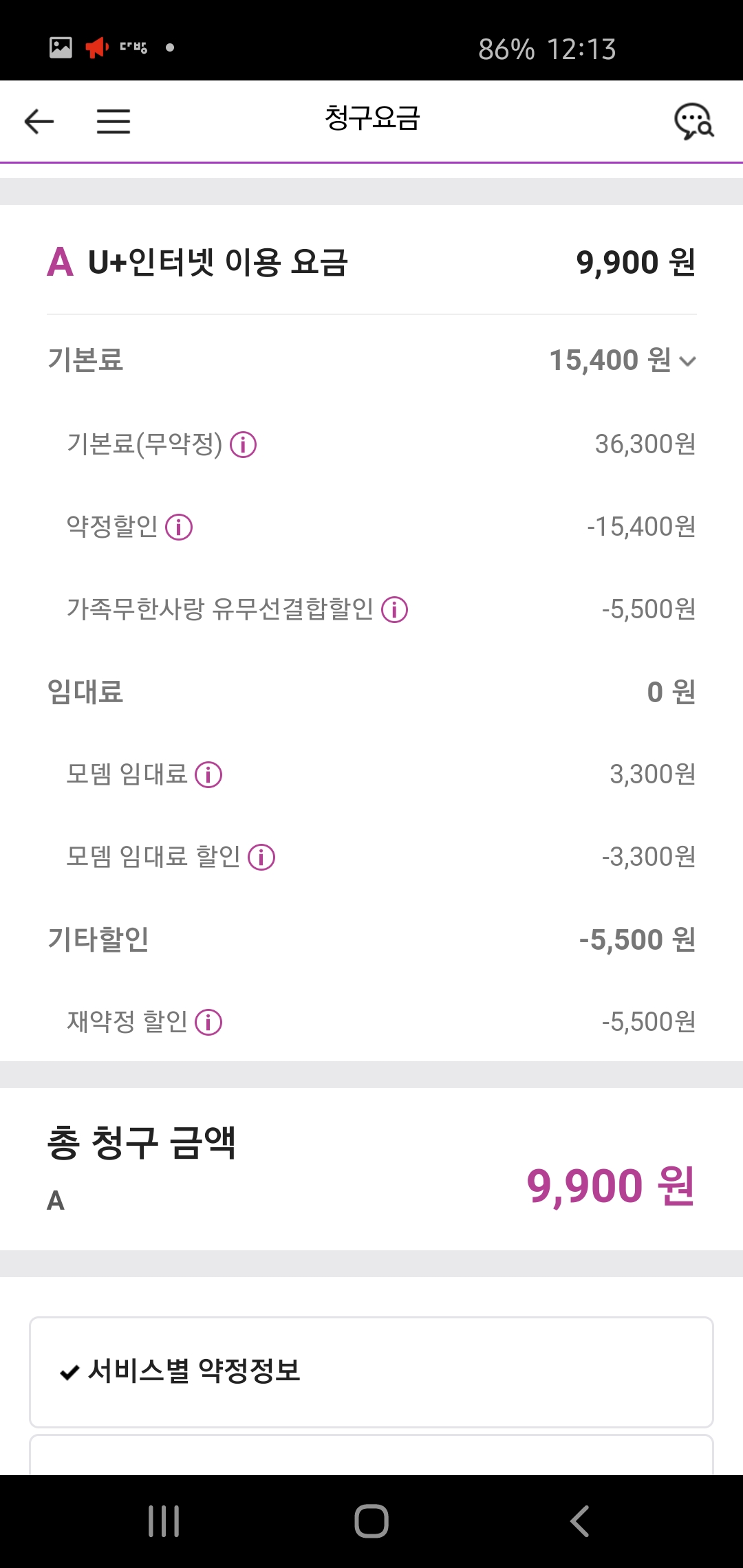 이미지는 제 인터넷 요금 내역이에요.
