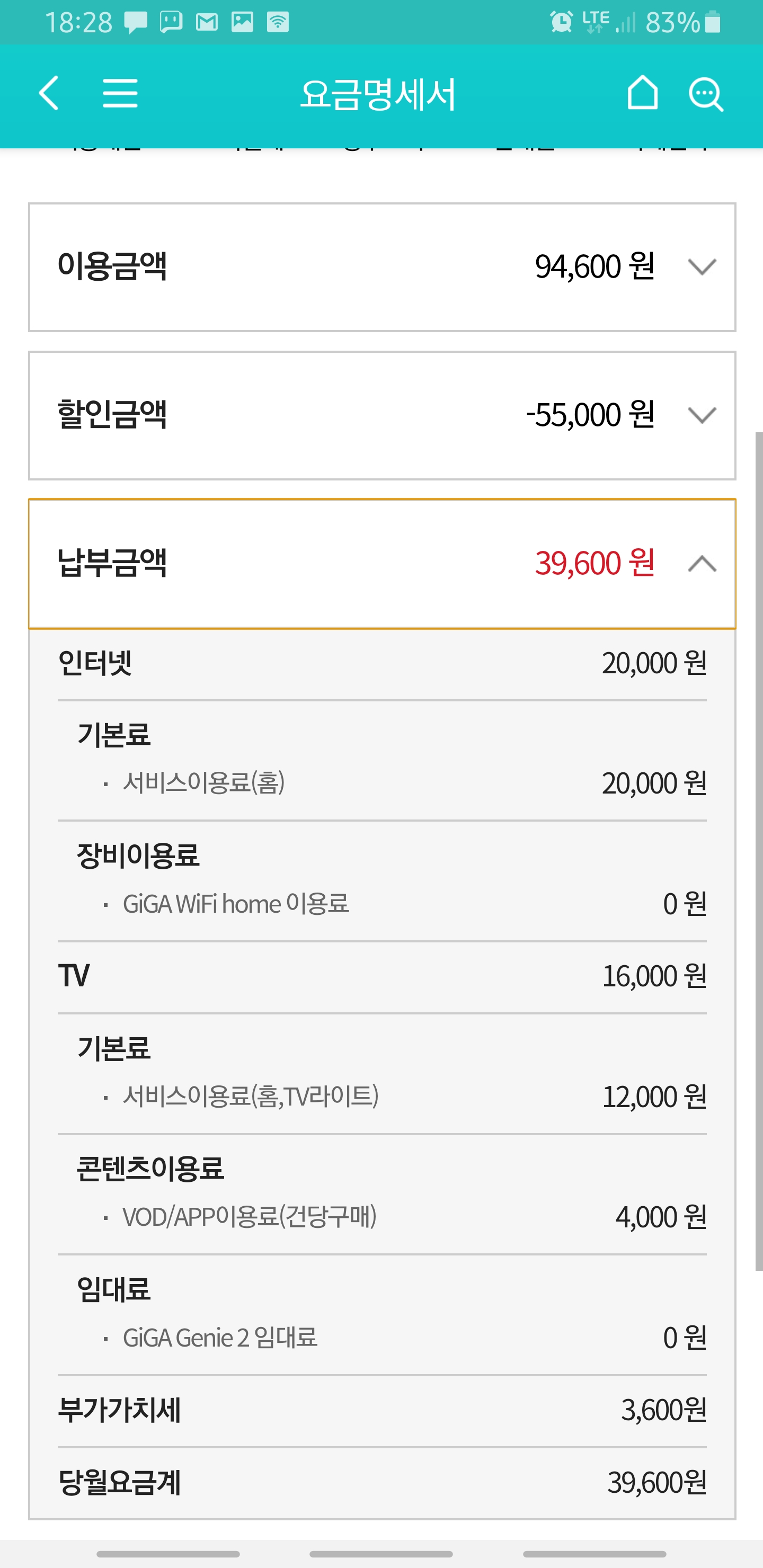 현재 컨텐츠(VOD) 이용료 4,400원을 제외하면..! 월 35,200원으로 이용중이시니까요~!>_<b