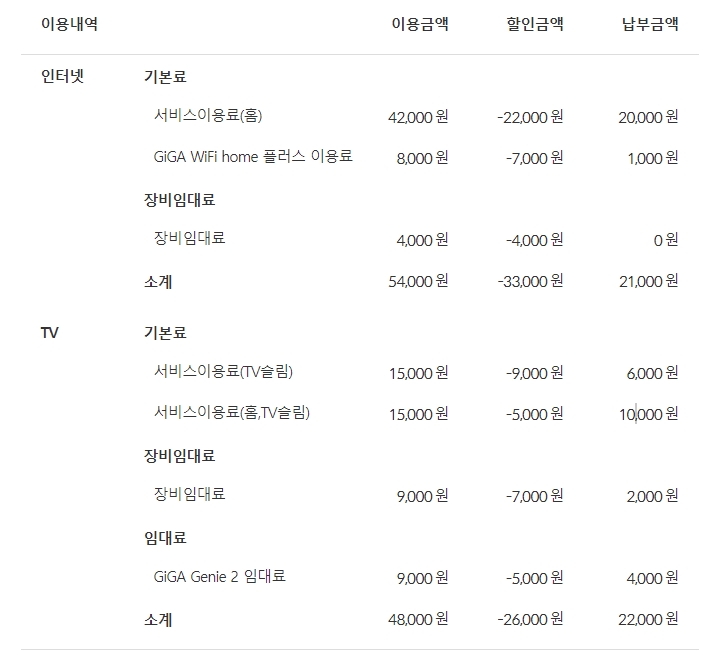 인터넷 + IPTV 2대 : 이전시 = 총 49,500원이 정상(!) 요금이지요~~!!