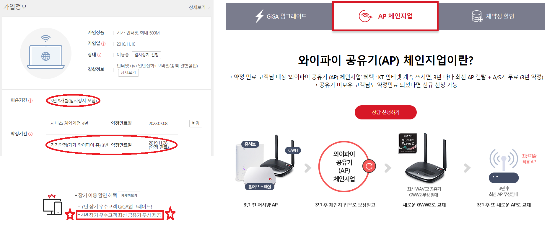 4년 장기 우수고객 최신 공유기 무상 제공 인데