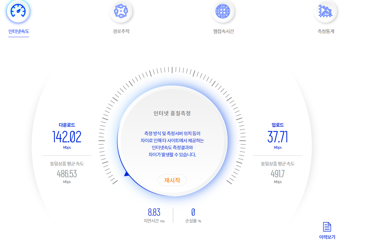 음.. 혹시 기사님 오셨을 때 속도측정도 한 번 받으셨을텐데