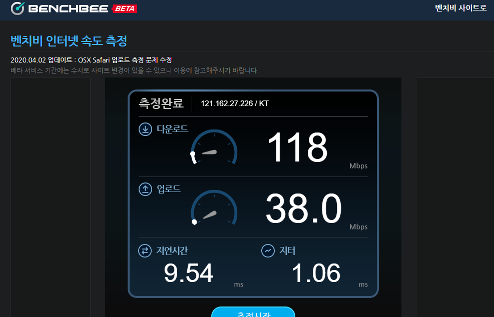 해외 속도측정 툴로 한 것도 아니고, 국내 벤치비 사이트를 통해 했는데도 이렇단 말이오.