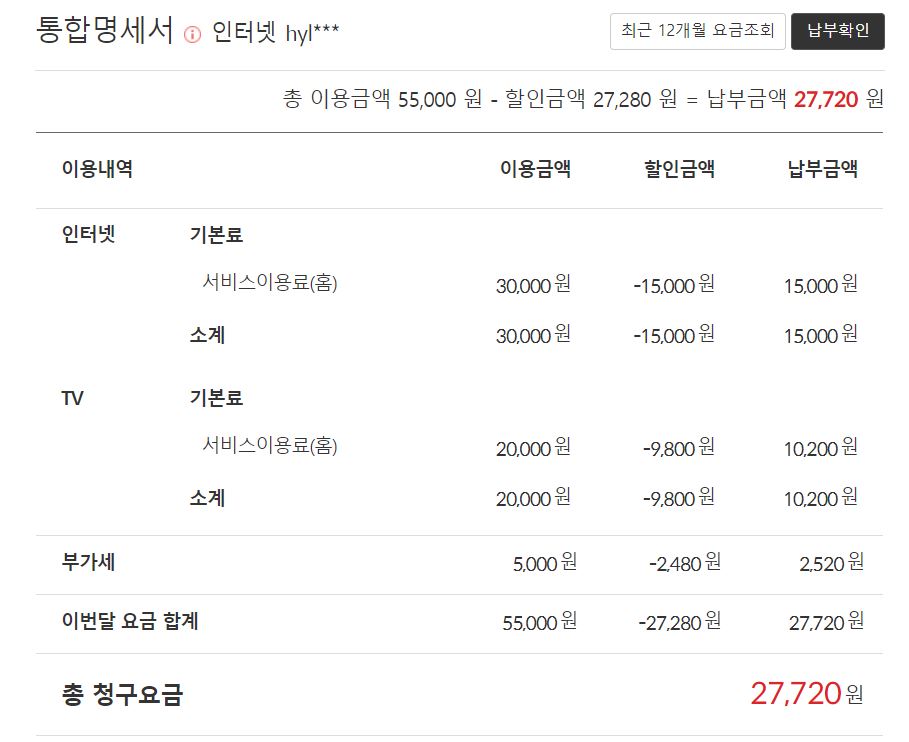 납부 요금은 동일하게 27,720원이 되어요.