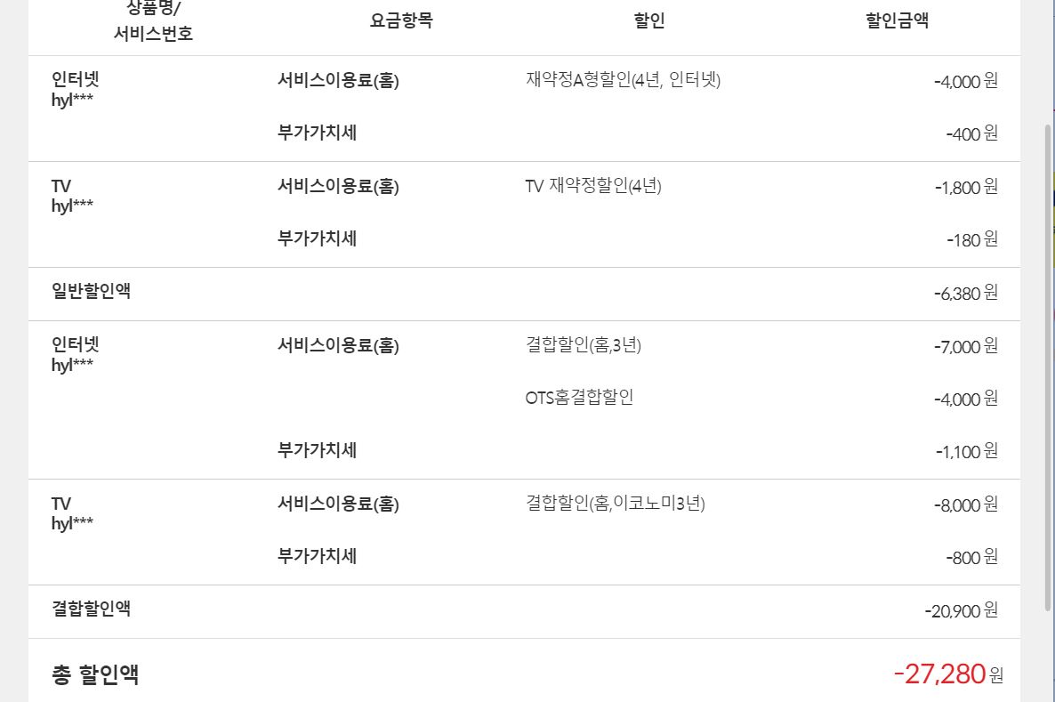 참고하셔서 인터넷 요금제 및 결합상품을 변경해주시면 좋겠습니다