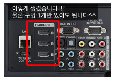 2) 셋탑박스 설치를 위해서는 TV에 HDMI단자가 있어야 해요.