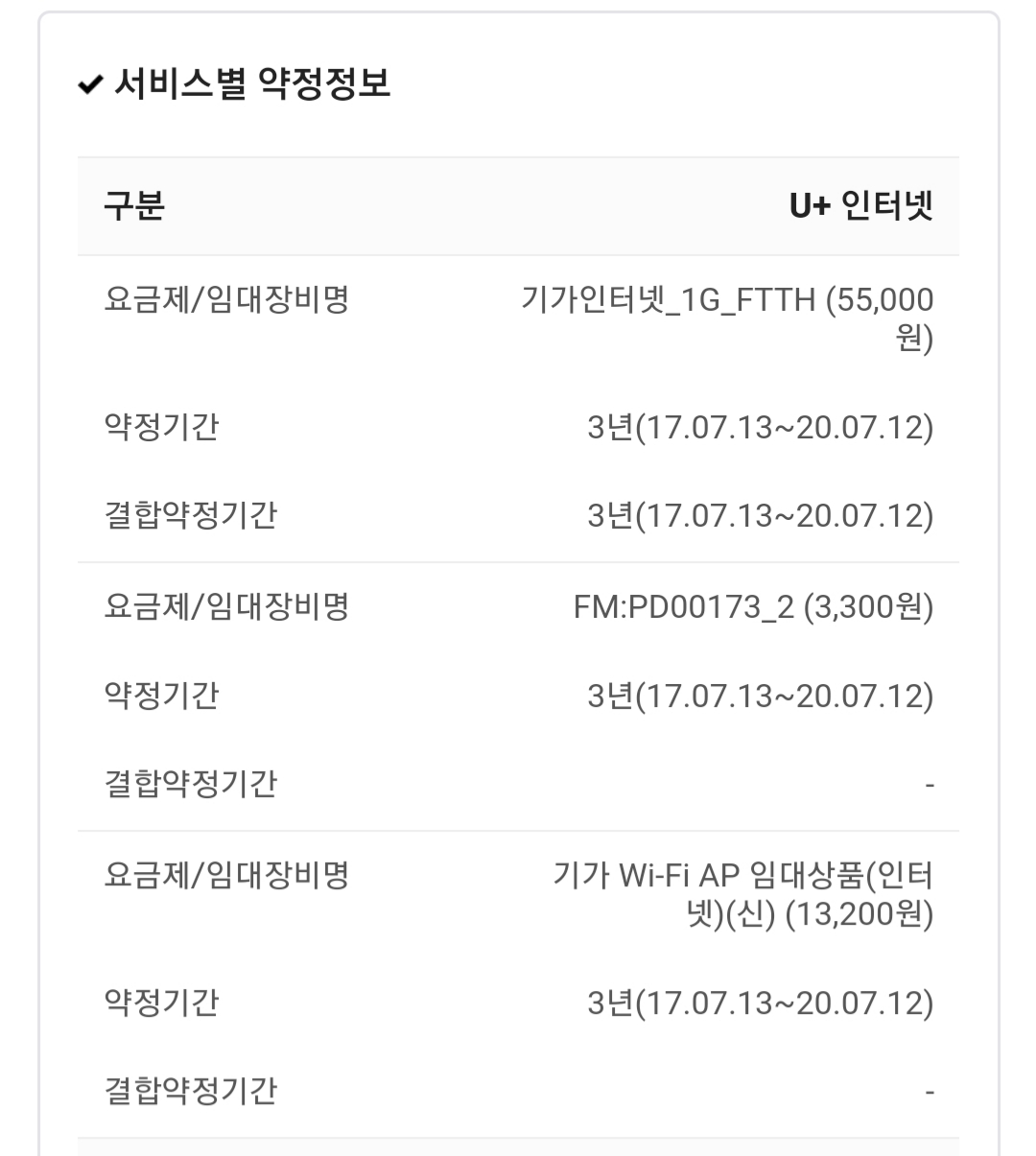 지금 쓰는 인터넷 요금제와 약정 정보 사진으로 같이 올려드릴게요 감사합니다.